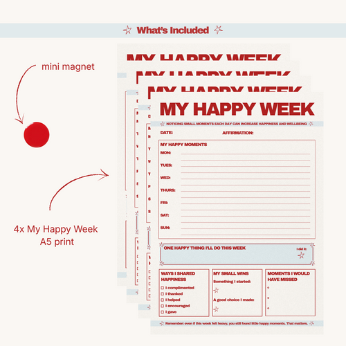 - an affirmation card to enjoy as an A6 print, with prompts on the reverse to reflect and create happy moments